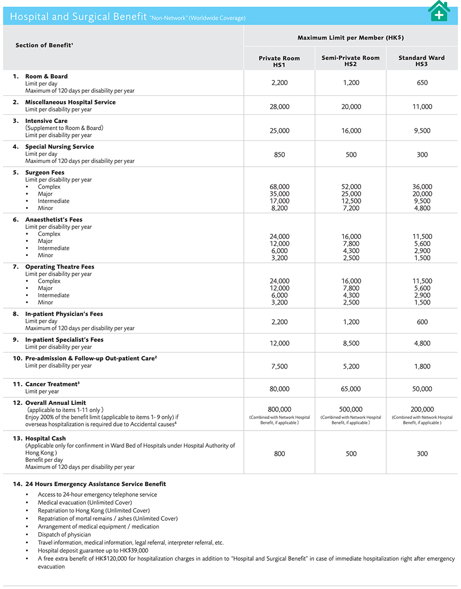Our medical network includes over 2,000 network doctors and medical service providers in Hong Kong, ranging from General Medical Practitioner, Specialist, Physiotherapist, and Chinese Herbalist. - Same premium for Same Level of Benefit