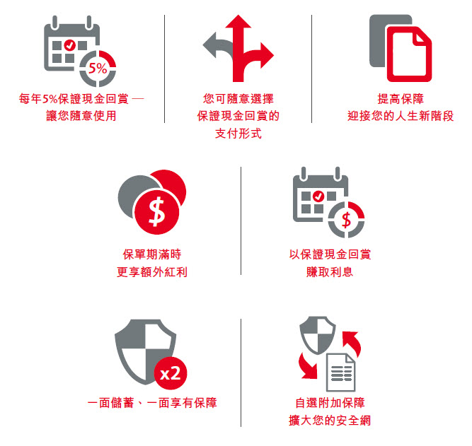 每年5%保證現金回賞 靈活滿足人生不同階段的保障需要